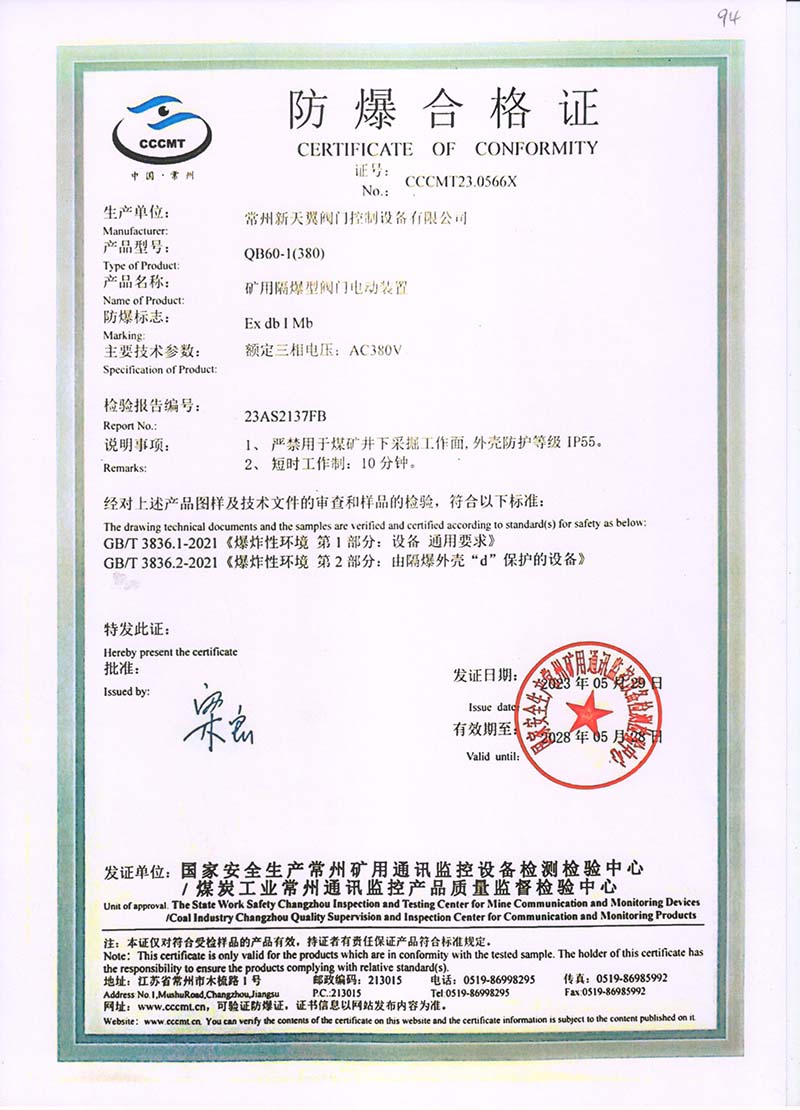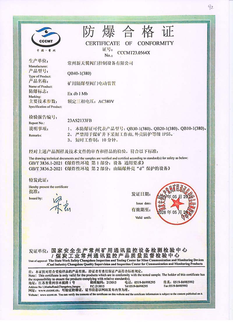 隔爆型QB QBZ QBT 220380中國國家強制性產(chǎn)品認證證書107.1