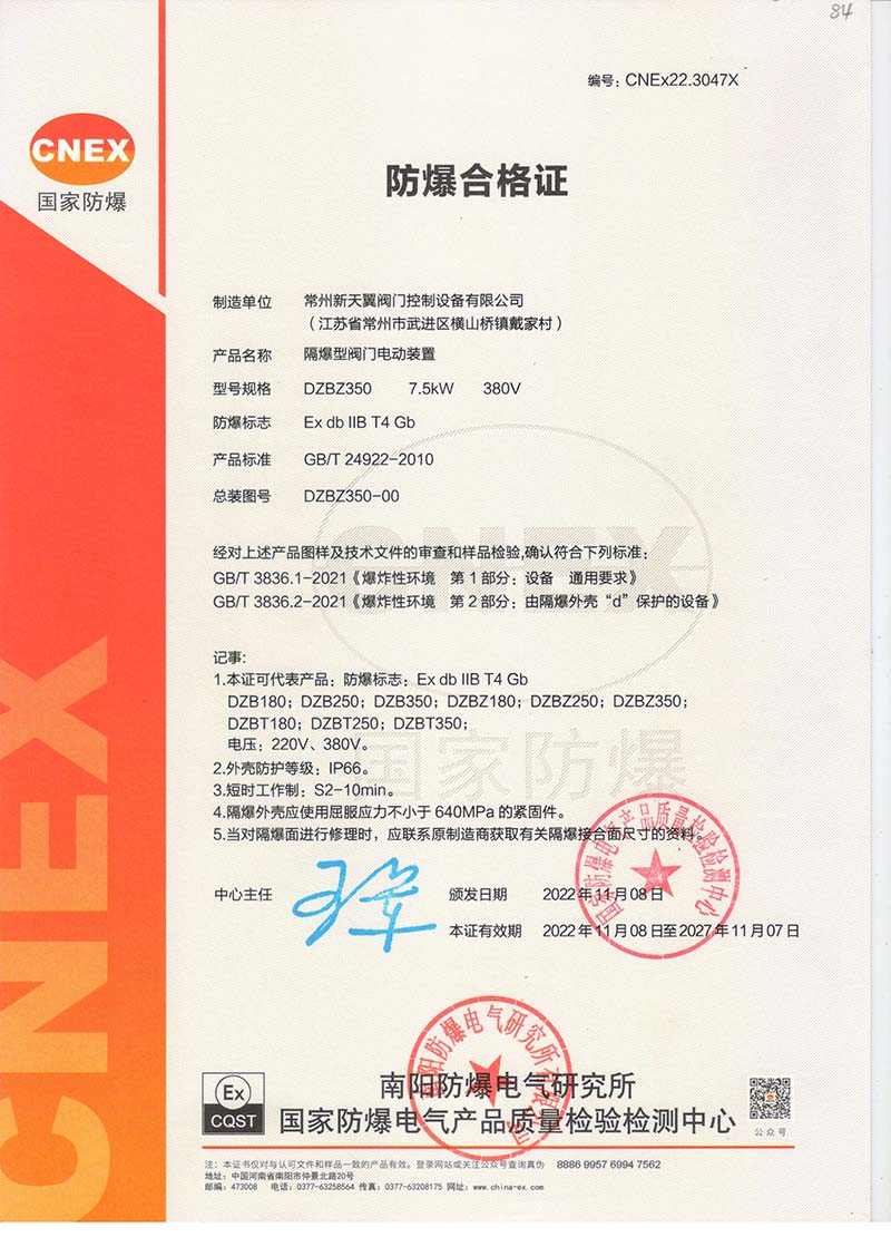 常州新天翼閥門控制設備有限公司是專業(yè)從事閥門電動裝置設計、制造、開發(fā)的企業(yè).公司擁有一批國內(nèi)外優(yōu)秀的產(chǎn)品設計和生產(chǎn)制造的工程技術(shù)人員、齊全的項目管理服務,統(tǒng)籌工程實力。依靠自身科技及優(yōu)勢,不斷進行新產(chǎn)品開發(fā)。現(xiàn)已開發(fā)、制造了十幾種專用閥門電動裝置,深受用戶好評??/p>