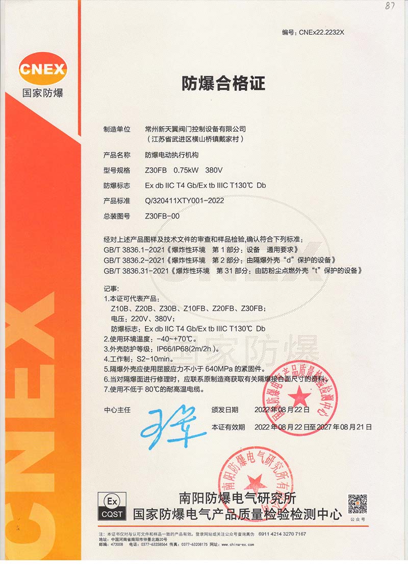防爆Z10B Z10FB國家強制性產(chǎn)品認證CT4證書109.1