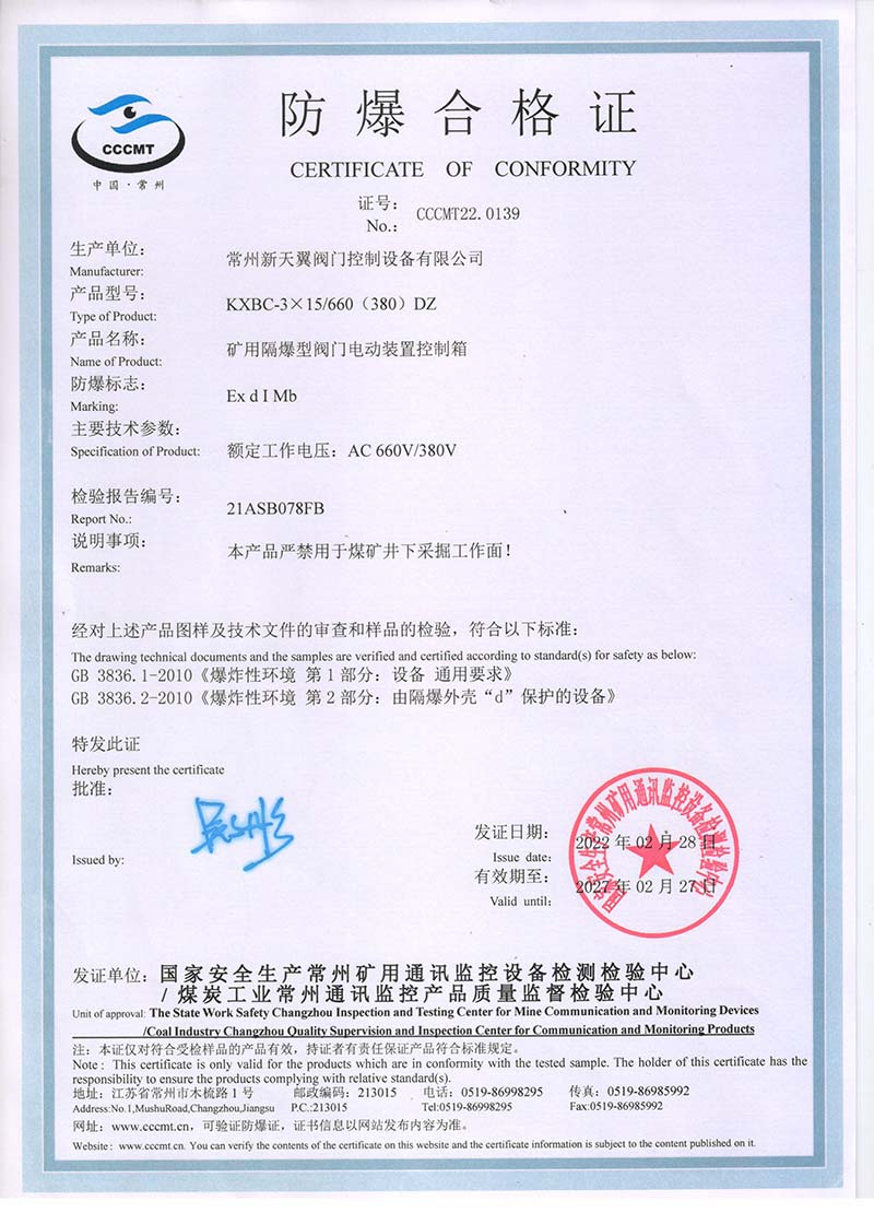 隔爆控制箱 中國國家強制性產(chǎn)品認證證書111.2