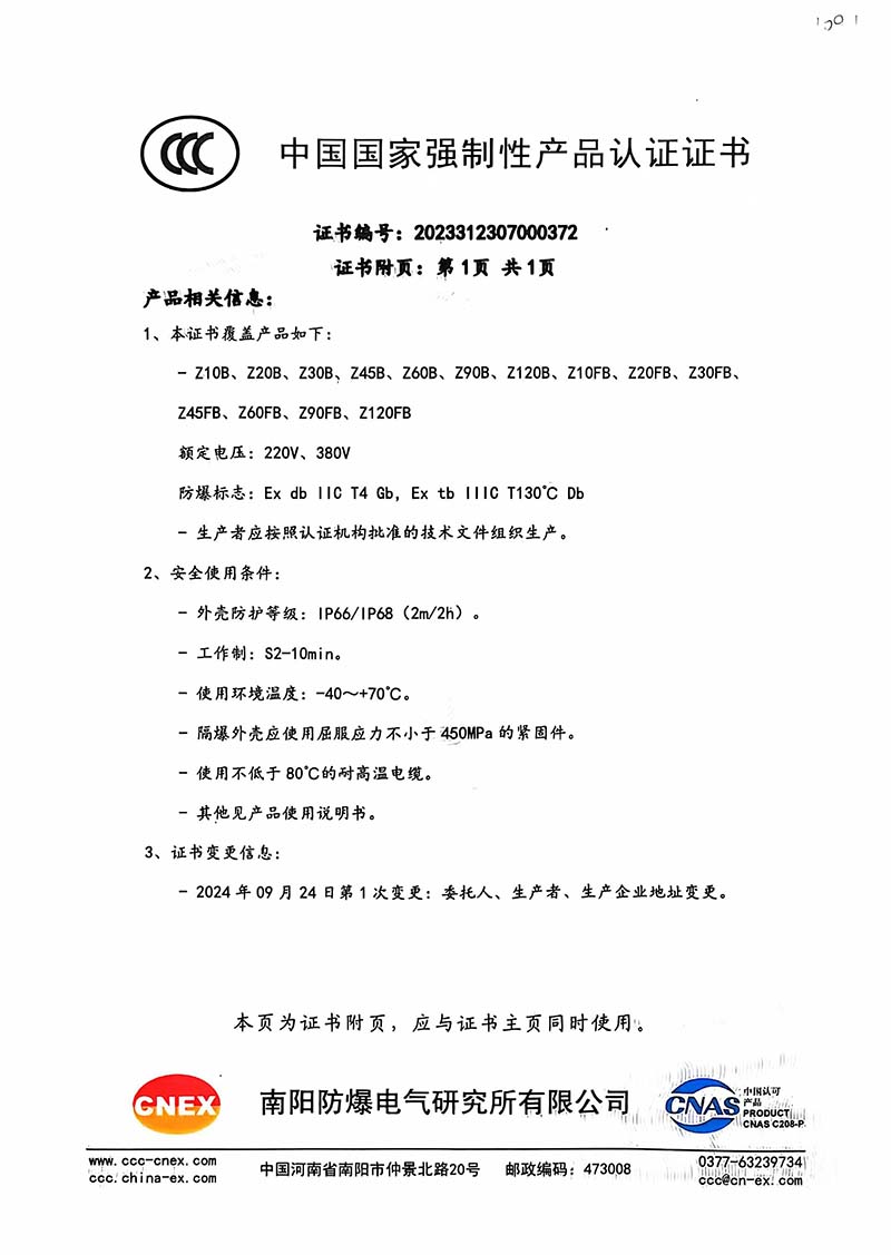 防爆Z10B Z10FB中國國家強制性產(chǎn)品認證證書109.2