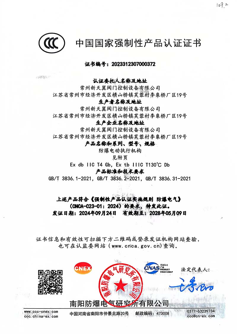 防爆Z10B Z10FB中國國家強制性產(chǎn)品認證證書109.1